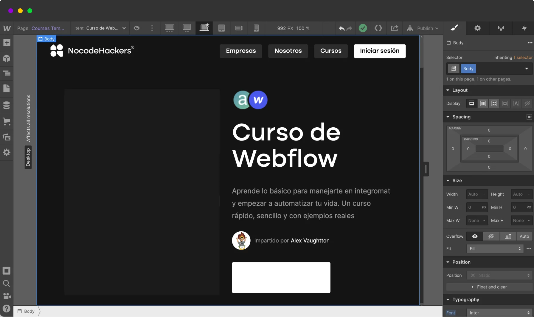 Un breve tour por la interfaz y peculiaridades de Webflow para que te familiarices con la herramienta