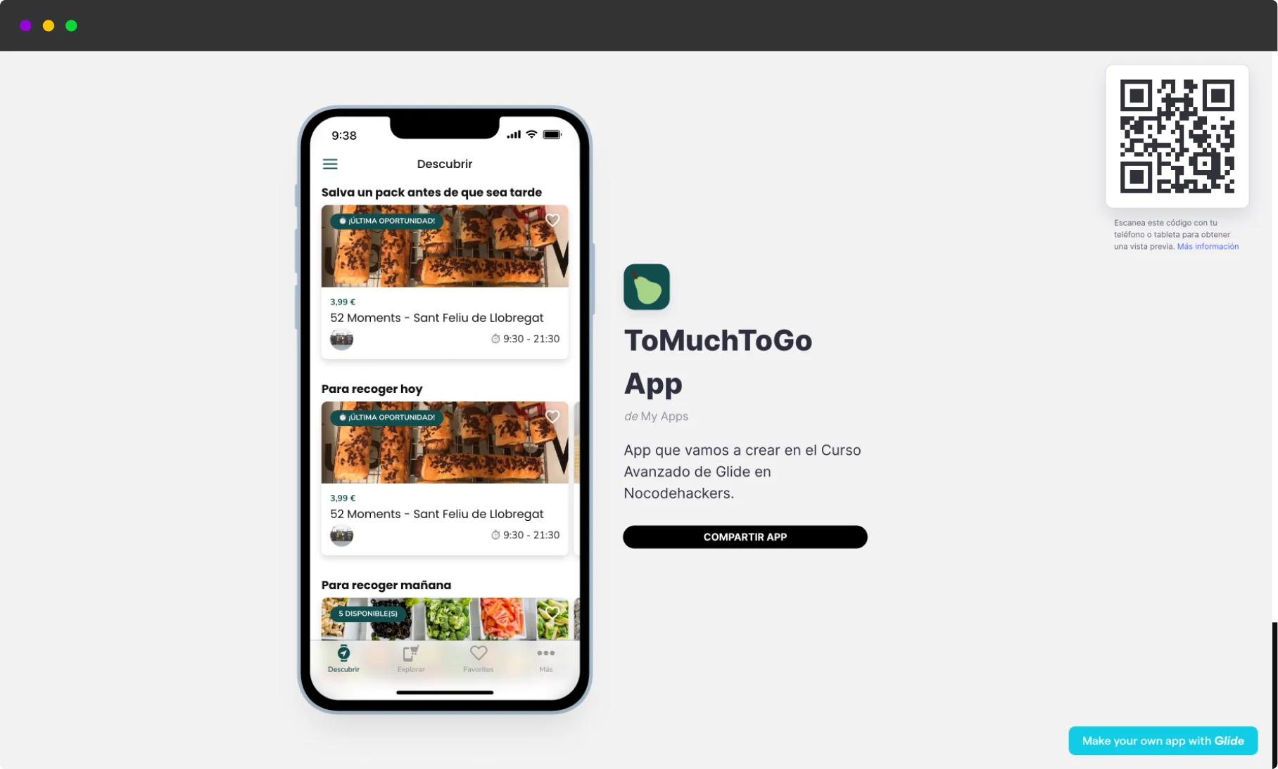 Construirás una app avanzada en Glide incluyendo funcionalidades complejas como lógica, registro, datos avanzados...
