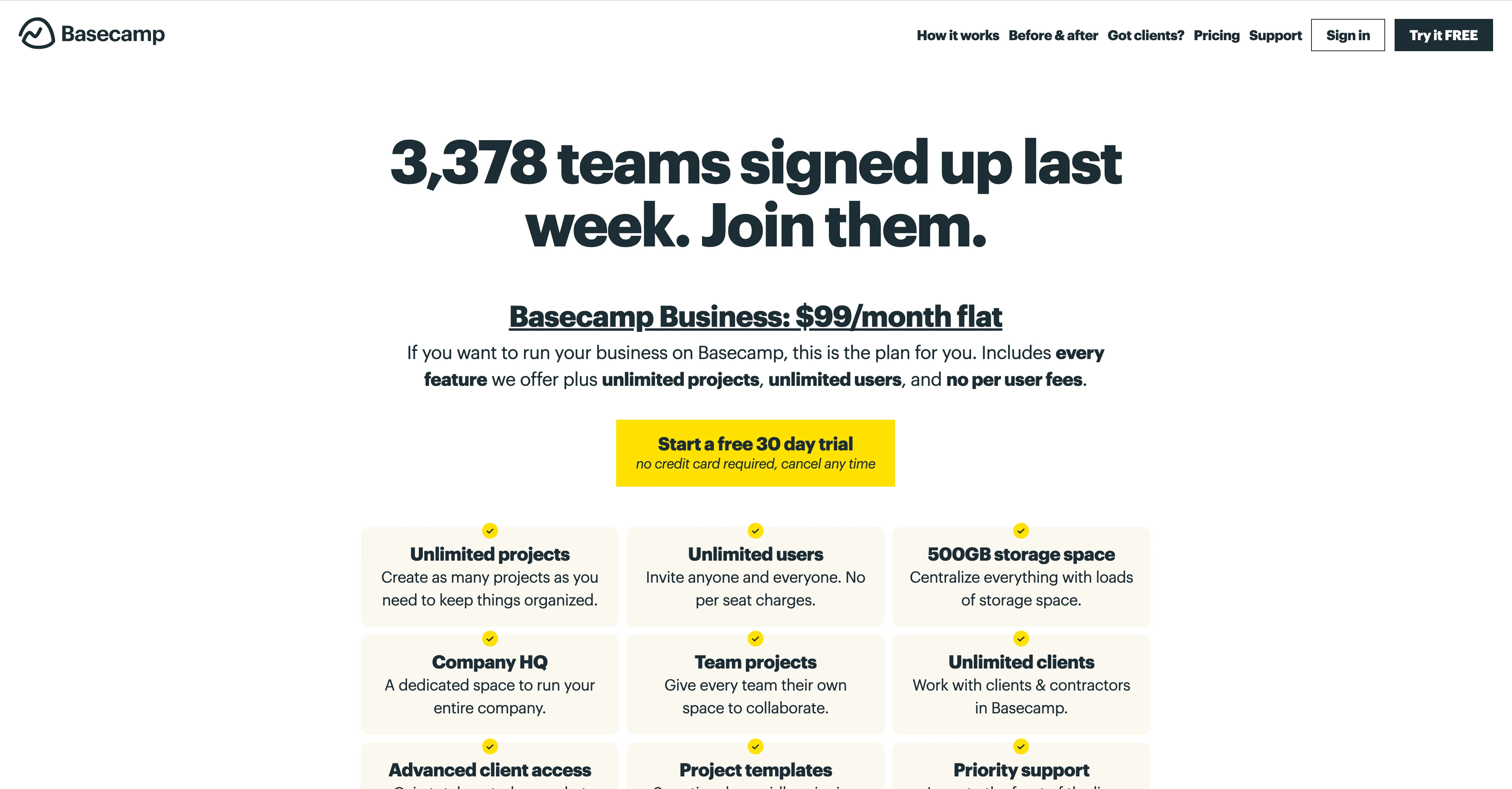 Basecamp es una herramienta de **gestión de proyectos que busca centralizar en un único lugar **toda la información necesaria para el equipo en remoto.