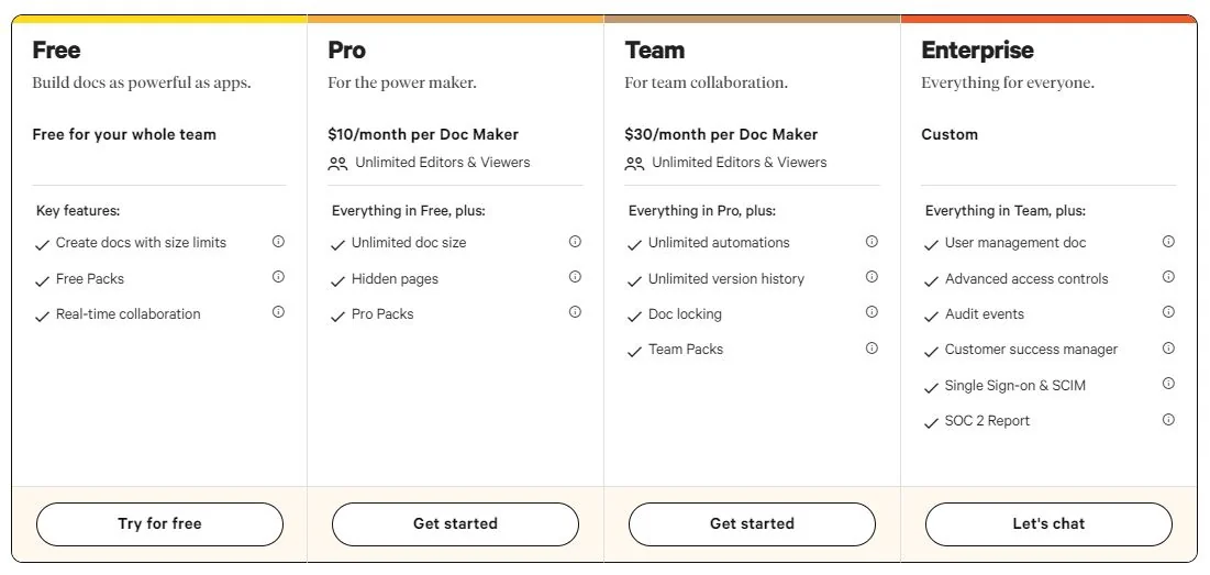 • Integraciones con G Suite, Slack, GitHub, Figma y entre los propios documentos de Coda.