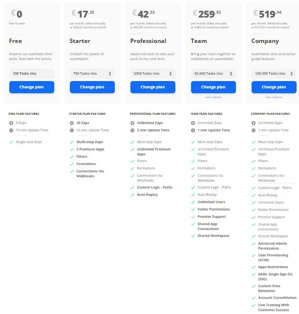 Puede conectar dos o más aplicaciones para automatizar tareas repetitivas sin codificar ni depender de los desarrolladores para crear la integración. Zapier permite que cualquiera pueda crear sus propios flujos de trabajo de aplicaciones con solo unos pocos clics.