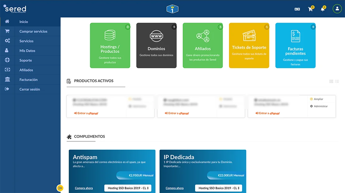 Ahora, entra en Sered.net, y vete a tu dominio.
