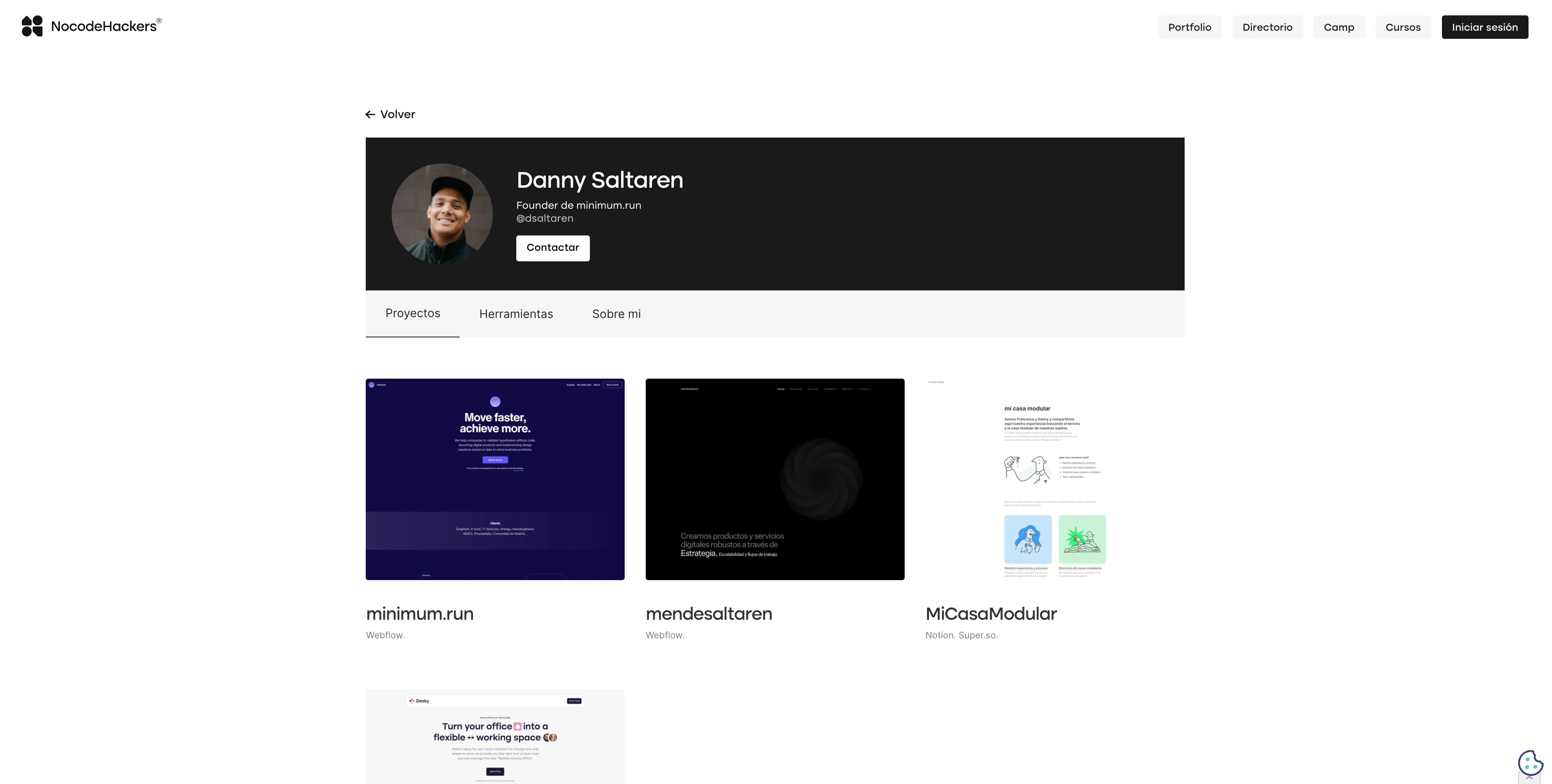 Además, como están relacionados los proyectos con el usuario, contamos ahora con una página específica autogenerada para cada usuario, en la que podrás ver su portfolio de proyectos personal, las herramientas en las que tiene expertise y una manera de contactar con él o ella.