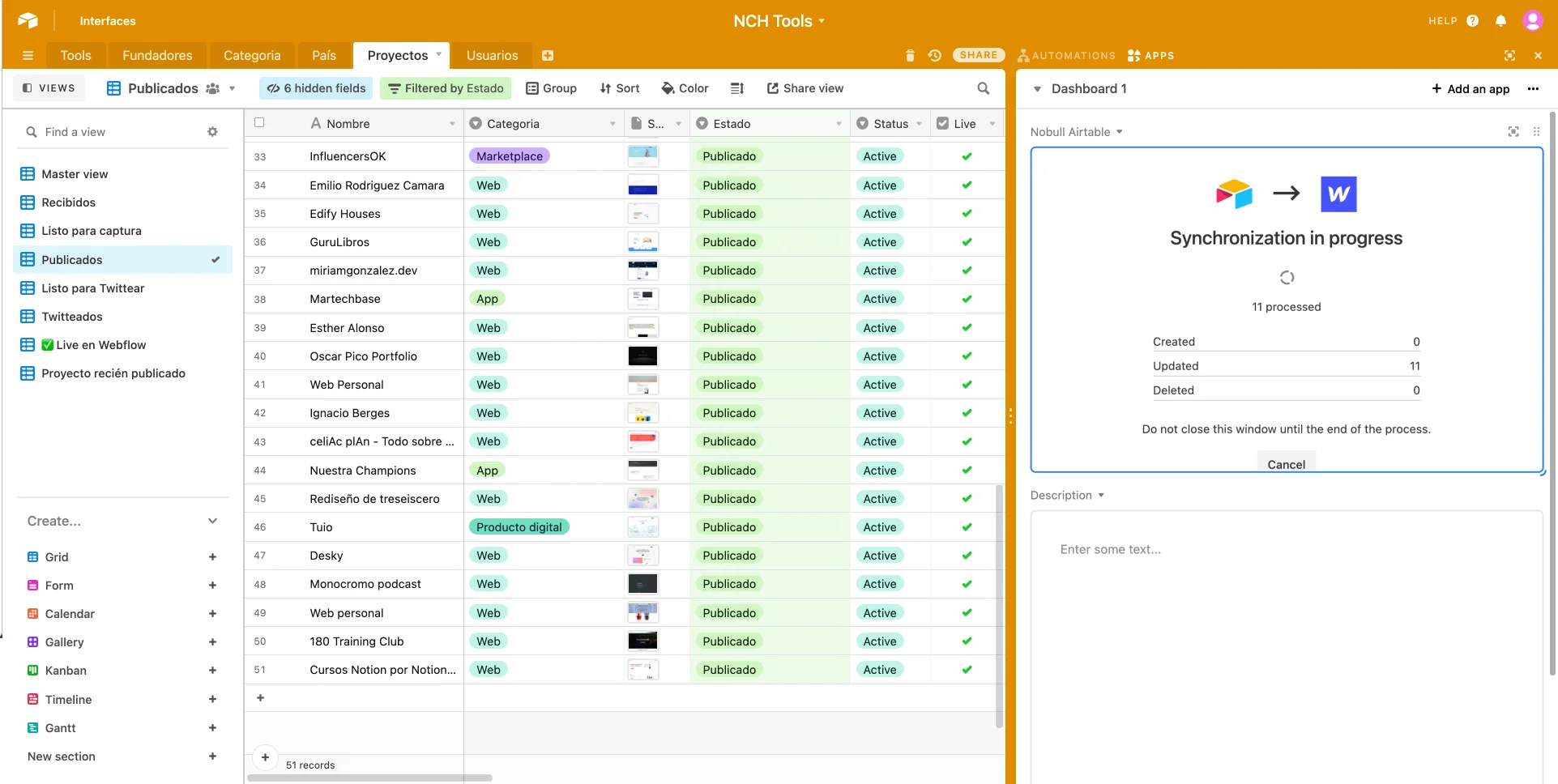 Para ello, simplemente hemos creado un campo en Airtable de "Estado", que nos permite identificar aquellos proyectos que aún no hemos revisado en una vista de gestión, que nos facilita la operativa y control.