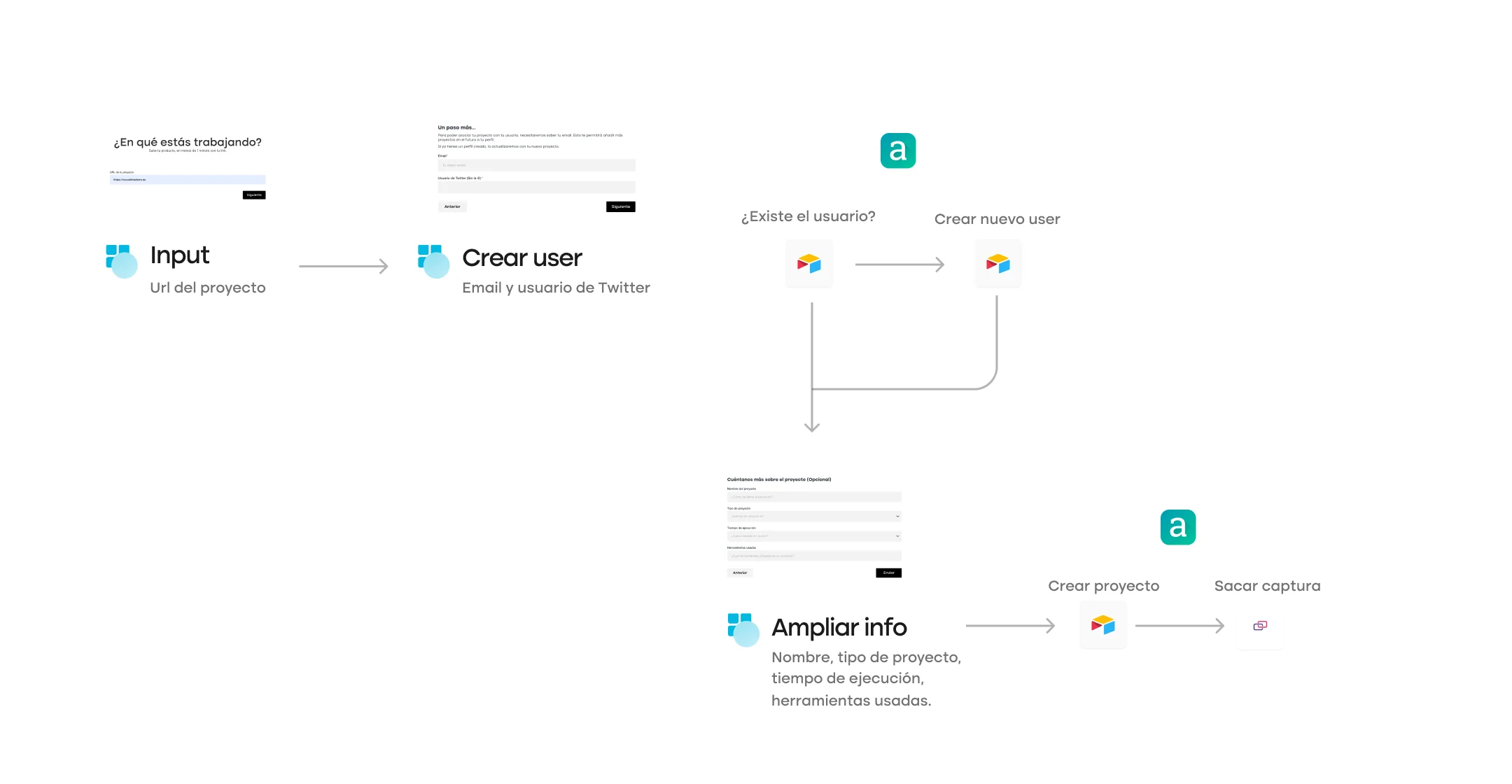 Para hacer el producto más sencillo, decidimos eliminar el registro de usuario. Para ello, optamos por crear una "cuenta" de usuario, basada en el email de la persona que sube el producto. De esta manera podremos asociar los proyectos que suba a su usuario y conseguir la funcionalidad de crear perfiles de usuarios - aunque no fueran cuentas realmente dichas.