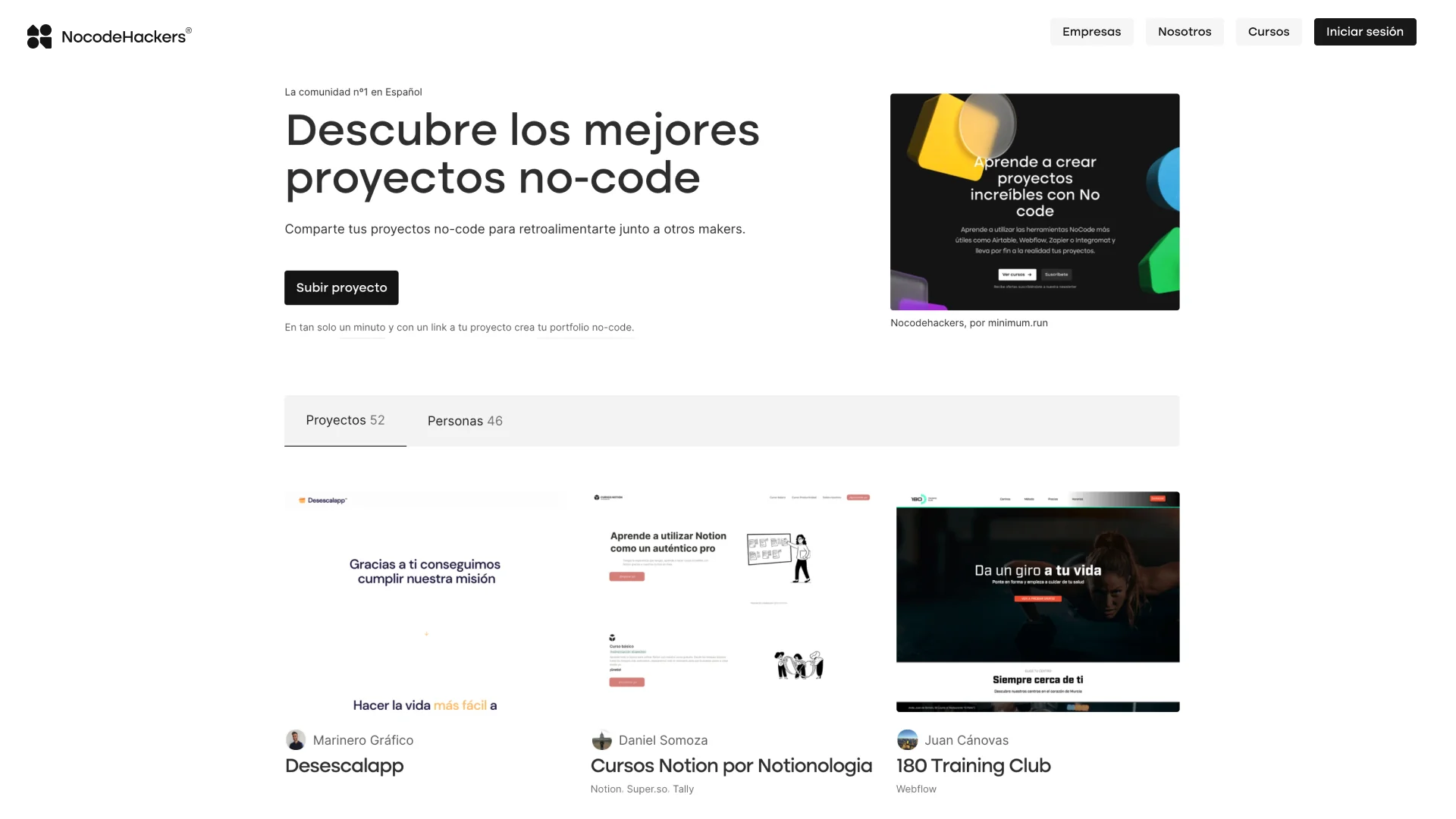 Una de las claves en el ecosistema no-code es la capacidad que te ofrece para poder crear proyectos increíbles sin código. Y a lo largo de nuestra trayectoria nos hemos encontrado proyectos geniales, que empujan los límites de lo que es posible hacer - pero que no tenían un lugar en el que mostrarlo.