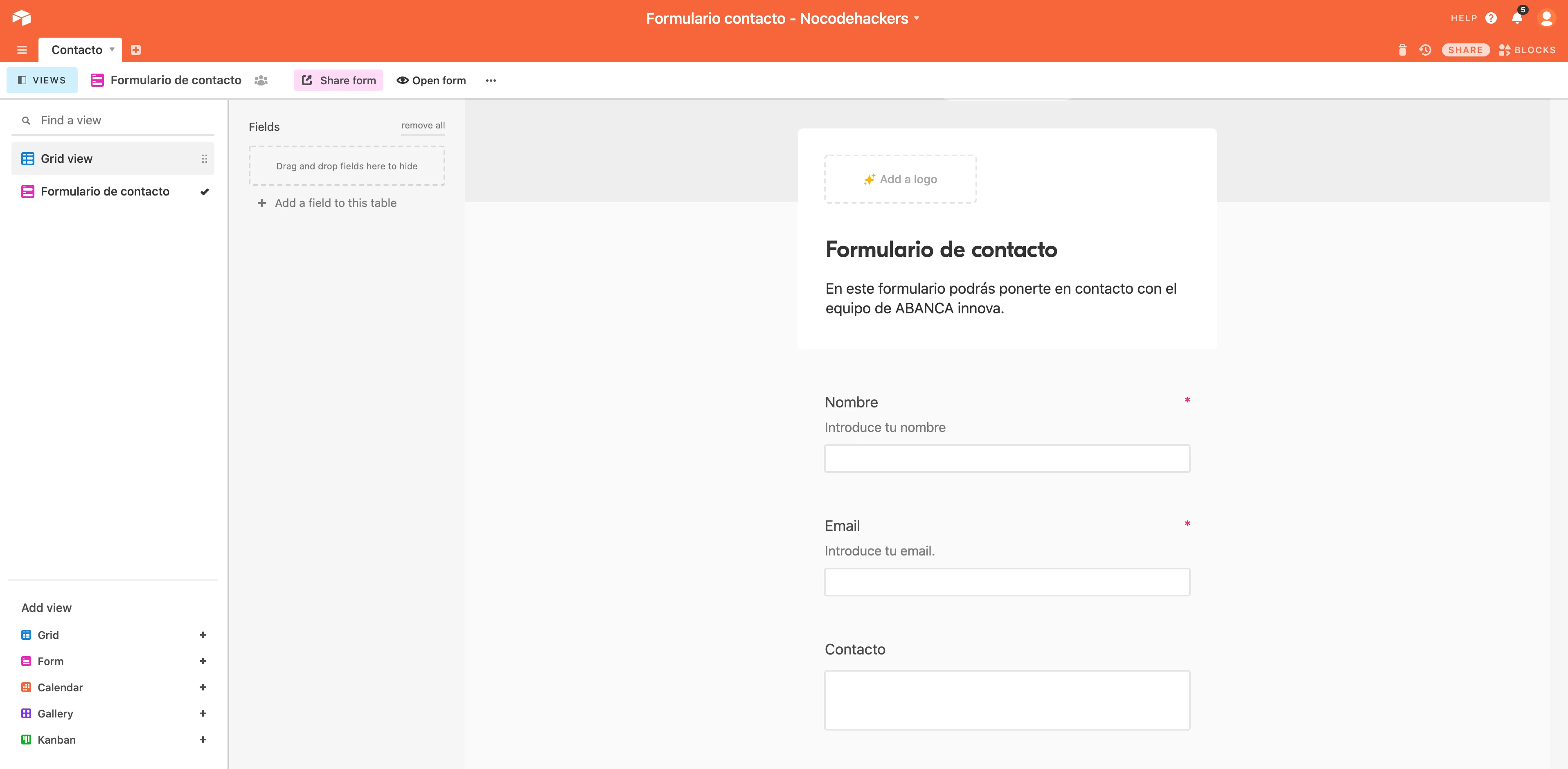 Una vez esté esto creado, vamos a crear un formulario de Airtable, para poder ver la experiencia de Airtable.
