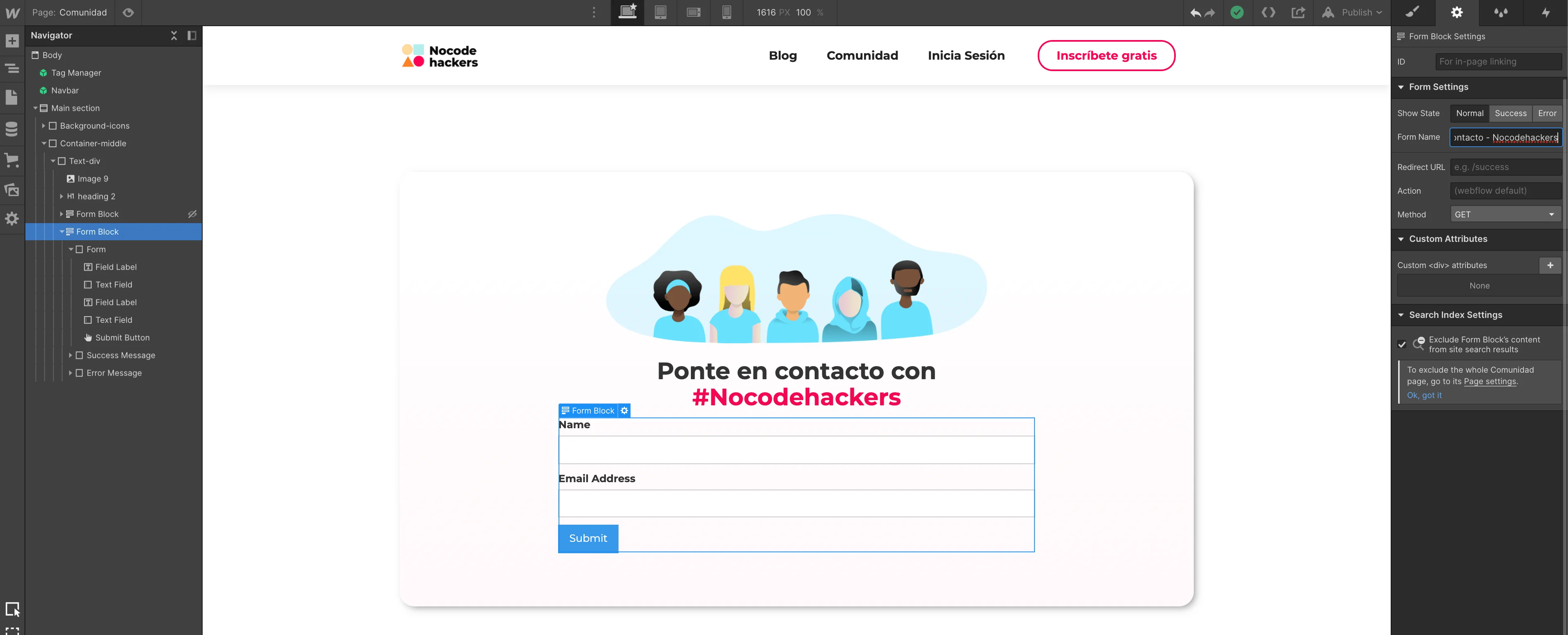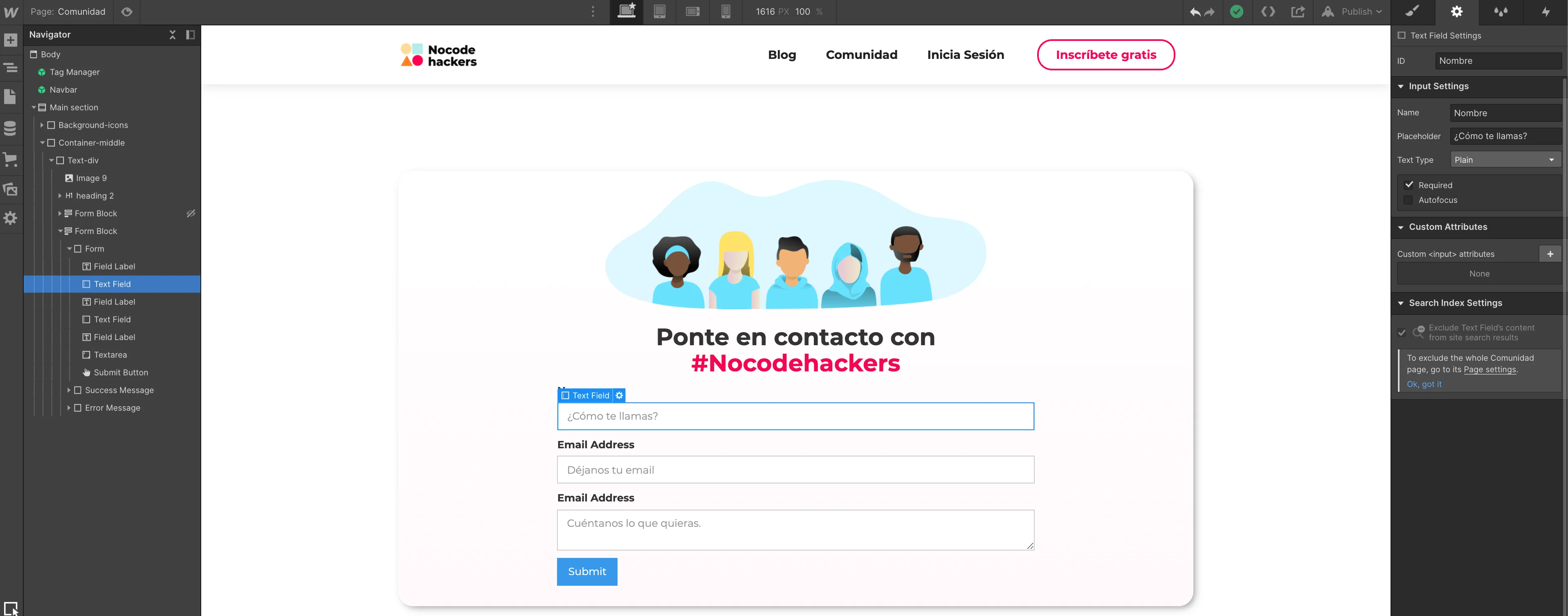 En Webflow podemos crear formularios y modificar prácticamente cualquier aspecto que queramos, ya que todos los campos son completamente personalizables de una manera sencilla.
