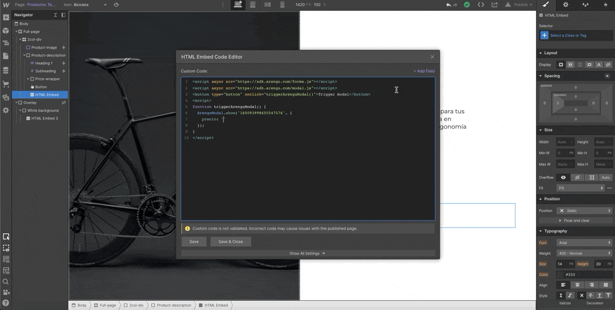 Para ello, tendremos que insertar un elemento HTML Embed en nuestra página de Webflow y pegar el siguiente código: