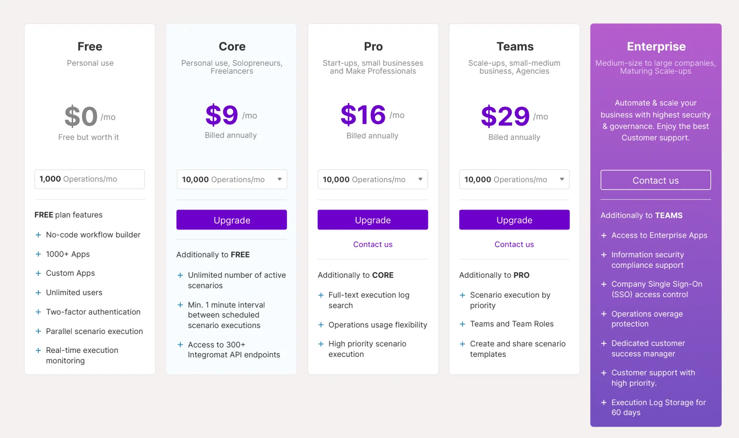 Aunque es un poco más compleja que alternativas como Zapier, la flexibilidad, coste y potencia de Integromat hace que verdaderamente no tenga rival a la hora de automatizar procesos complejos.