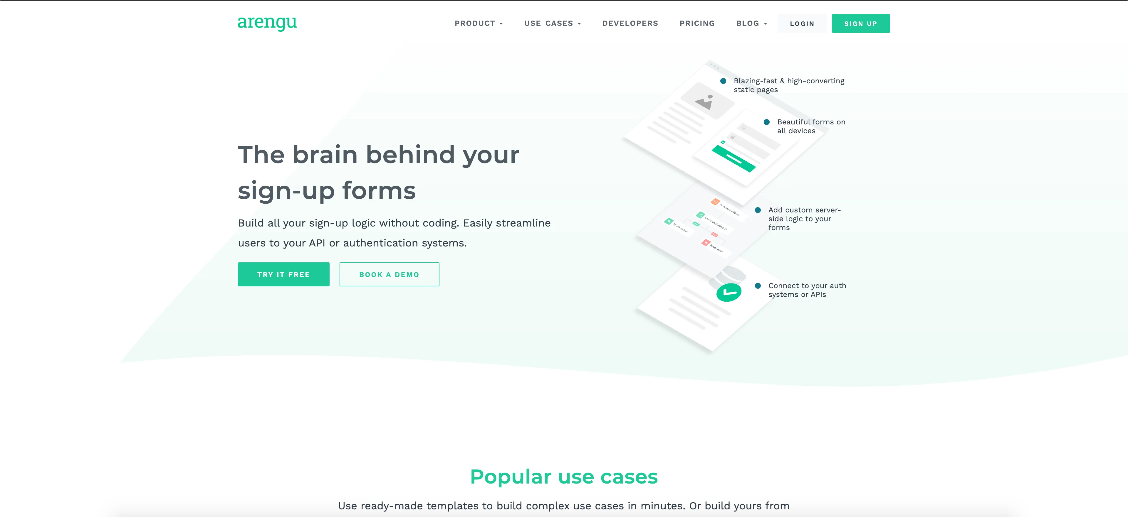 Arengu es un SaaS para crear formularios y flujos de registro de usuarios creada por Jacobo Vidal, Sergio Regueira y Pablo Castro, allá por 2018
