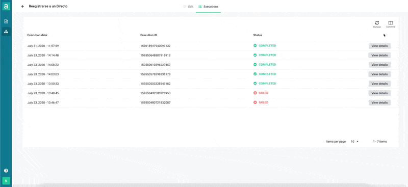 Para ello, simplemente vete al flujo que se acaba de ejecutar, a la pestaña de Executions.