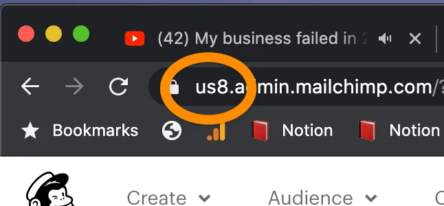 - Host: Si vas a tu sección de Admin dentro de Mailchimp, aparecerá algo antes del .admin.mailchimp.com. En mi caso es us8, eso es lo que tendrás que poner