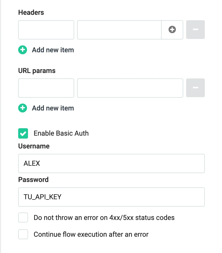 Ahí deberás poner en Username cualquier texto que quieras (es indiferente), y en la parte de password, deberás introducir tu API Key, que has obtenido antes.