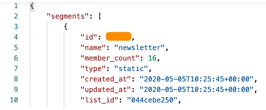 Te devolverá un listado de todas las tags de tu audiencia, con su ID asociado, que es lo que deberás copiar en la URL anterior.