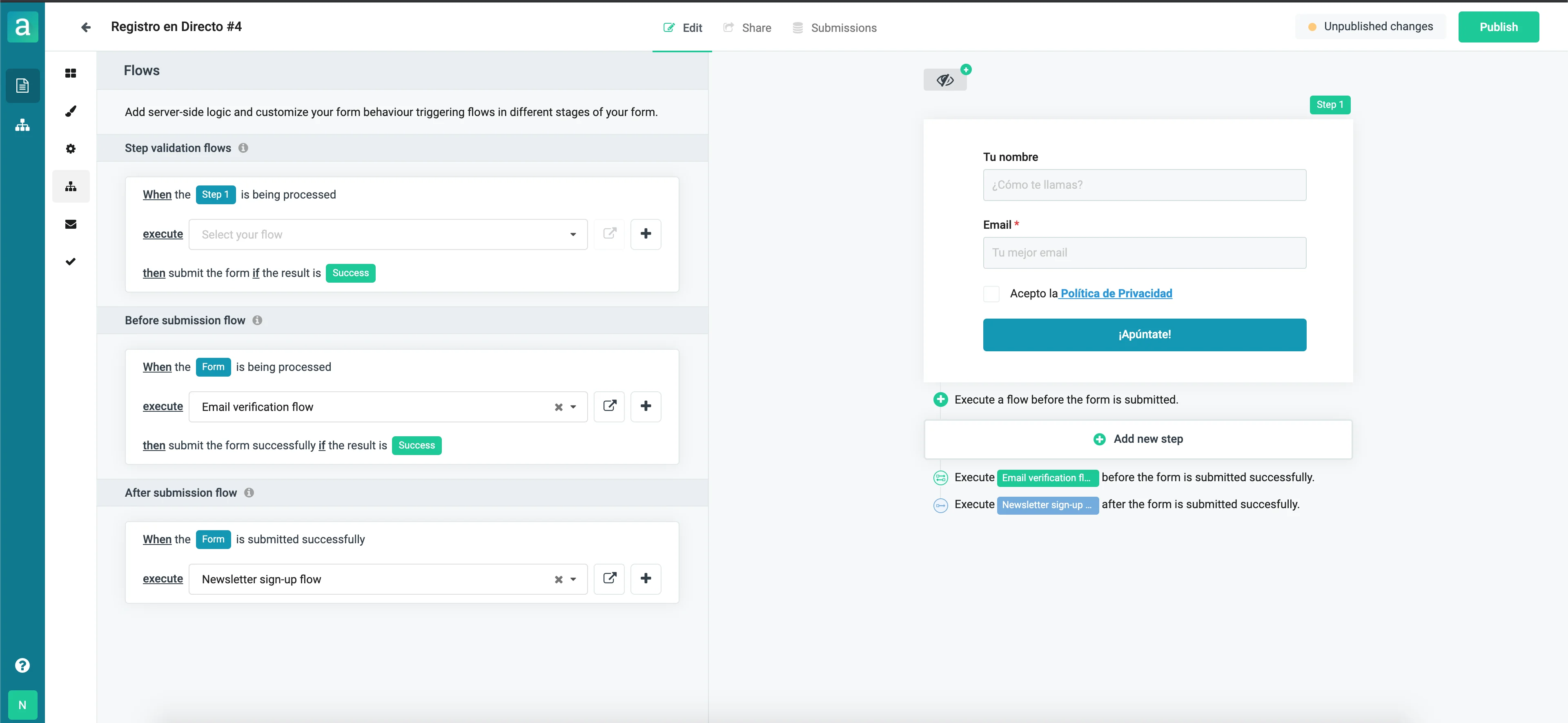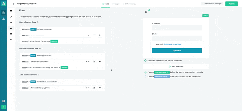 A la hora de configurar los flujos que se desencadenen en tu formulario, tenemos 3 opciones: