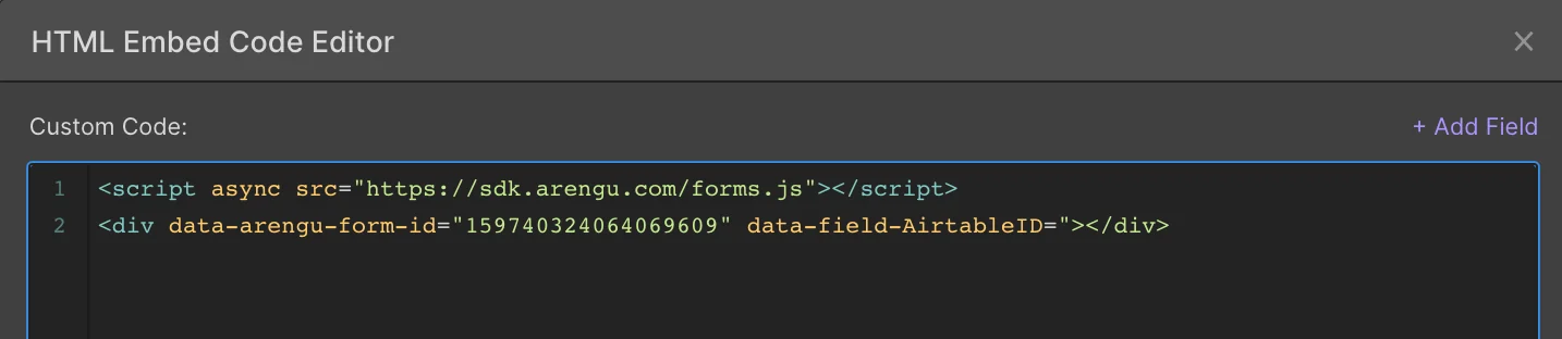 Es importante que donde pongo AirtableID, utilices el ID que le has dado en el formulario de Arengu:
