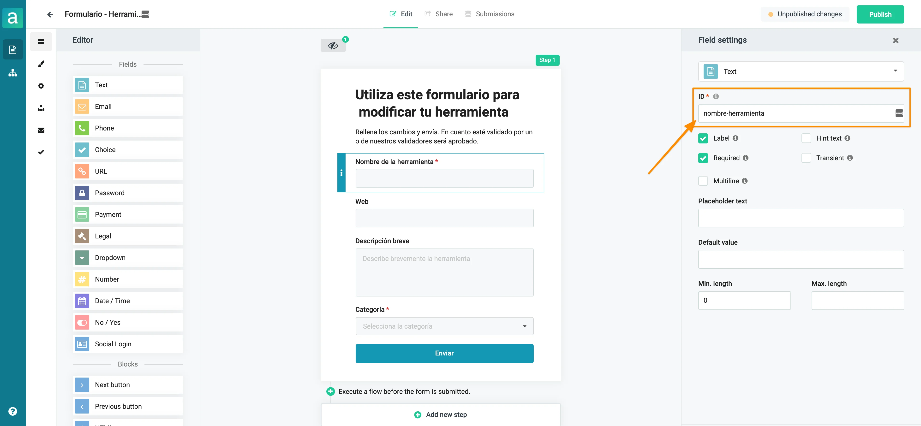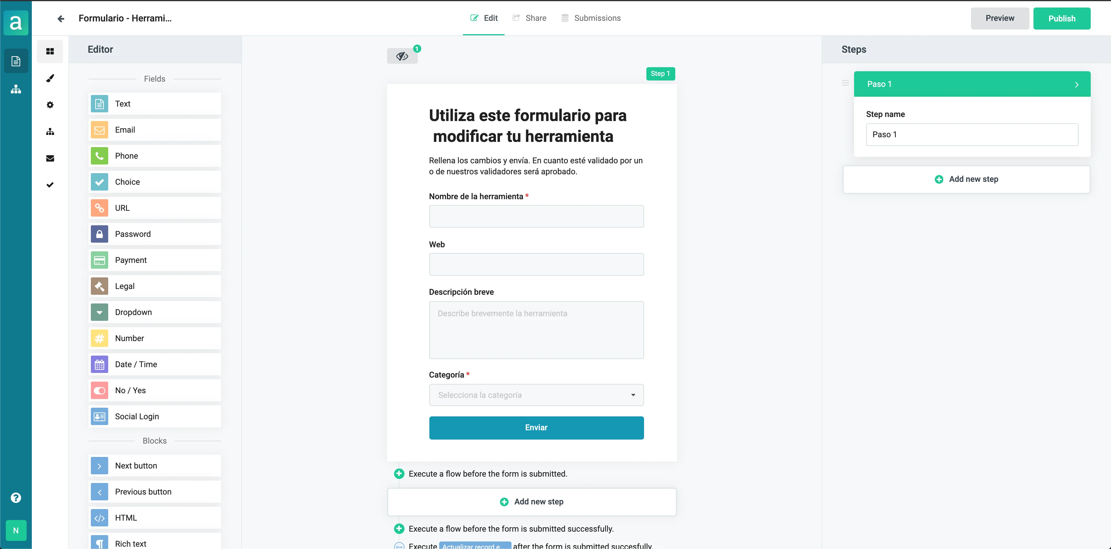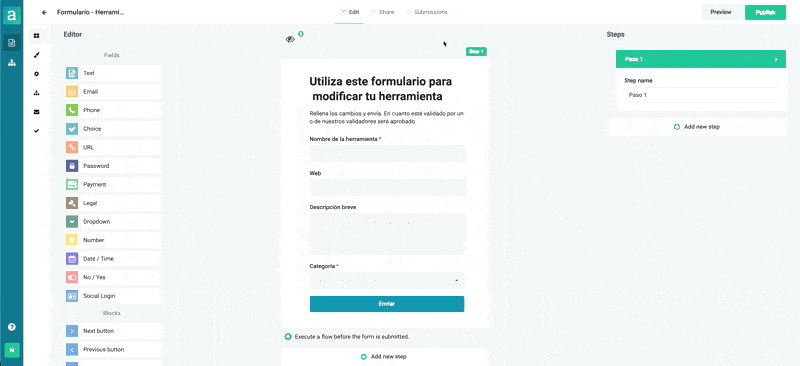 Ahora que ya tienes esta página creada, vamos a dar la opción para que los usuarios puedan modificar la herramienta directamente desde esta página. Para ello hay que hacer tres cosas:
