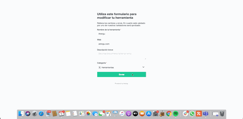 Después, estará todo listo para que puedas modificarlos con el formulario de Arengu desde la web.
