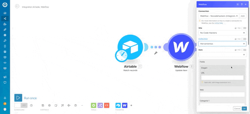 Cuando en Airtable se actualice un campo, actualiza un elemento en Webflow