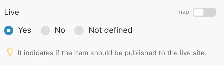 Por último, selecciona que el elemento sea Live, para que los cambios se propaguen automáticamente: