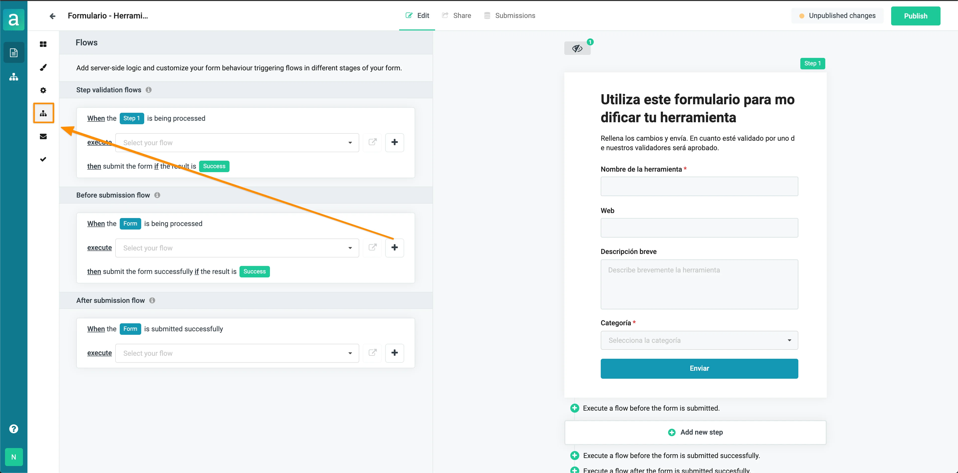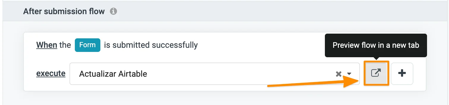 Deberemos ir a la sección de After Submission Form, y le daremos al botón + que nos permitirá crear un nuevo flujo. Le daremos el nombre de "Actualizar Airtable".