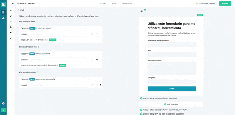 ¡Listo! Ahora deberás publicar el flujo, para que se queden guardados los campos, y podrás hacer un envío de prueba para comprobar que funciona correctamente.