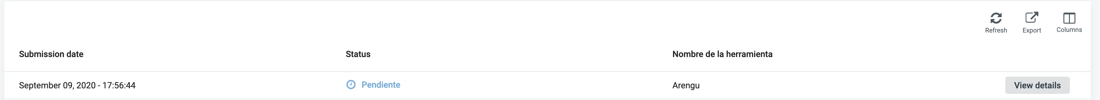 Para aprobarlo deberás acceder a la pestaña de Submissions. Verás que ahora aparece un campo nuevo llamado Status y que tiene un iconito de Pendiente.
