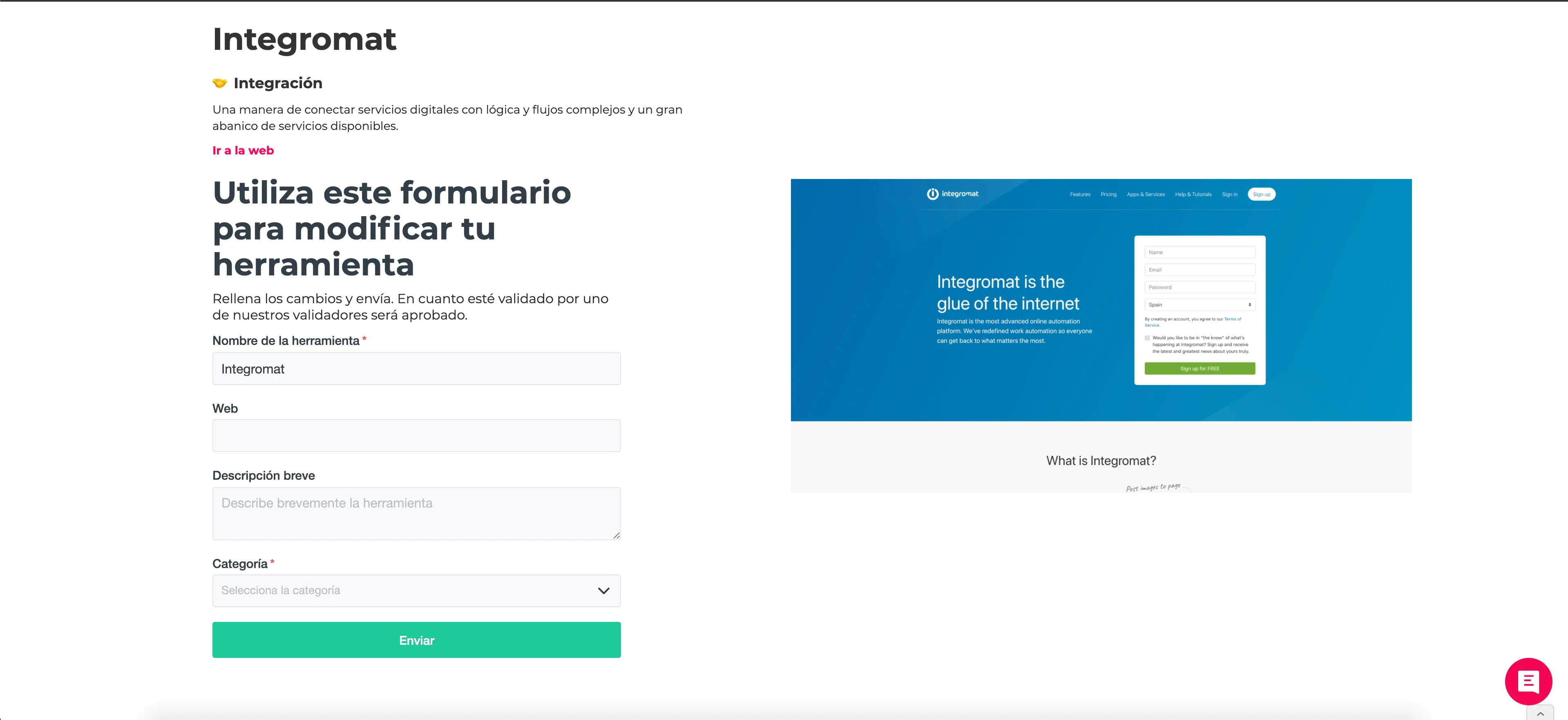 En este caso, he hecho una plantilla muy sencilla con el nombre de la herramienta, una captura a la web y poco más: