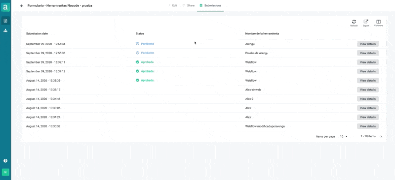 Podemos crear diferentes estados dentro de la propia herramienta que nos permita aprobar o rechazar los envíos y desencadenar acciones cuando cambiemos de un estado a otro.